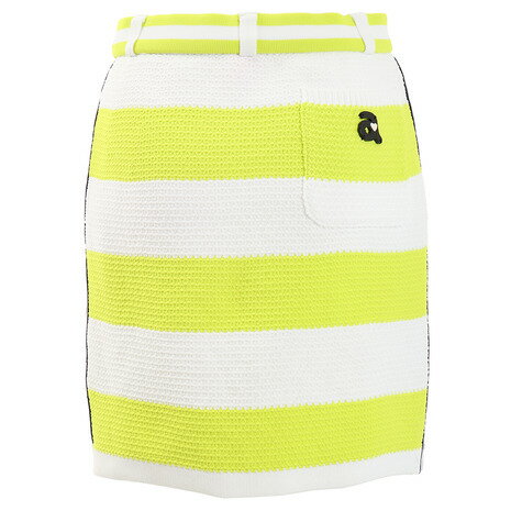 ●グリーンの上で存在感を放つボーダー柄のスカート。